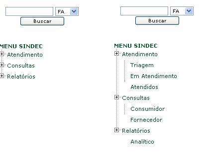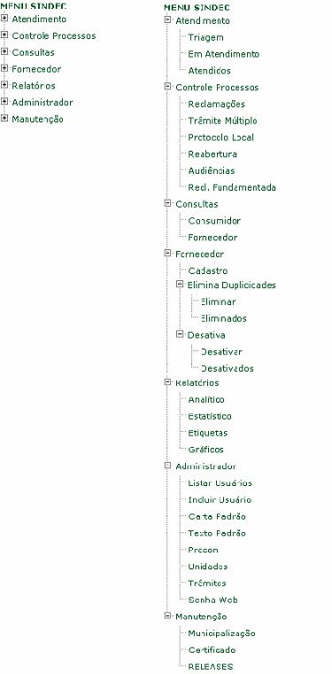 Figura 6: Menu SINDEC (Perfil Atendente Geral)